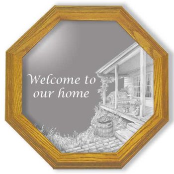 'Welcome to Our Home'' Country Art Etched Mirrord Wall Mirror, Octagon Solid Oak Frame - Great Housewarming Gift