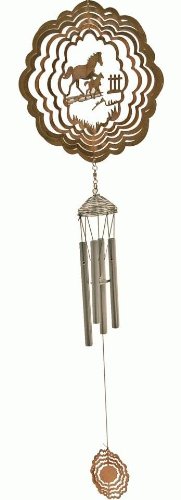 This eye dazzling wind spinner comes with a windchime and a mini spinner hanging on bottom. In the center of the spinner there is a design of a horse. Makes a great gift. The wind spinner it self is 7.5" wide while the overall length is 28.5".