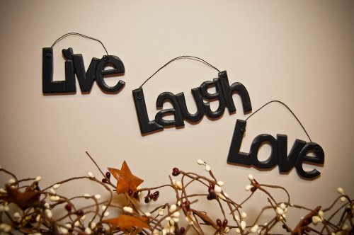 These wooden hanging words would make perfect accent pieces to any room in your home. Simply cut out letters spell Live, Laugh, Love. Theyve got softly carved edges and are done in basic black.